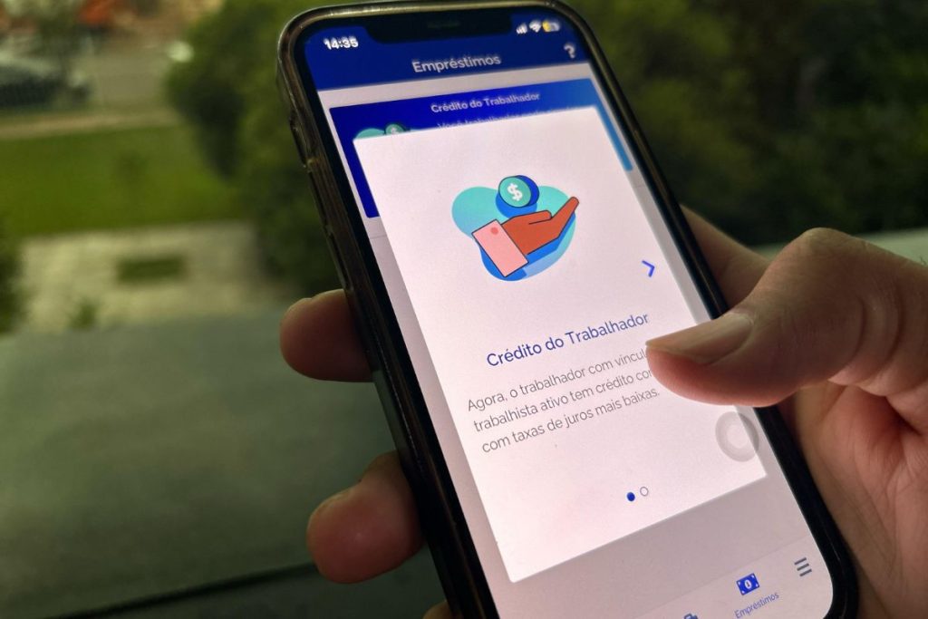 Para realizar uma simulação e, posteriormente, contratar, o trabalhador deve abrir o aplicativo e fazer login com sua conta gov.br. No menu inferior, é necessário acessar a aba “Empréstimo”, identificada por um ícone de nota de dinheiro. Ao clicar em “FAÇA UMA SIMULAÇÃO”, o usuário deve preencher o valor desejado e selecionar a quantidade de parcelas para o pagamento. Em seguida, é só aceitar o compartilhamento de dados e clicar em “SOLICITAR PROPOSTAS DE EMPRÉSTIMO”.